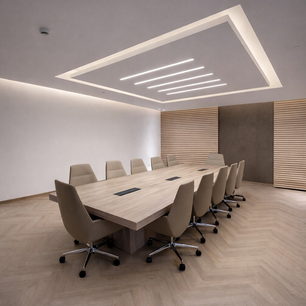 Moderne møtebord fra Italia helt i laminat med kubformade ben.