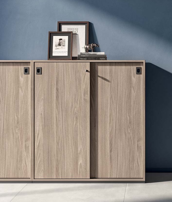 Oppbevaringsskap med skyvedører på sokkel. Det er mulig å kombinere fargen