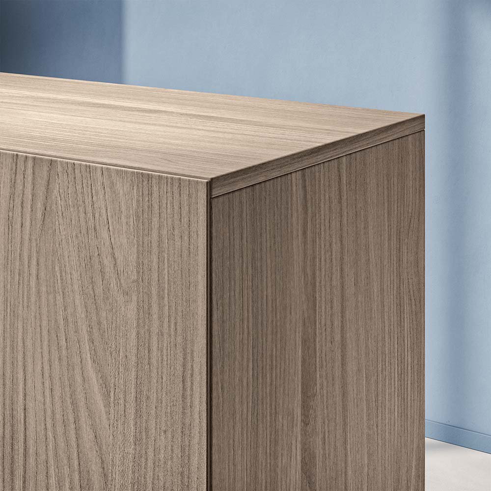 Tilgjengelig i følgende laminat: hvit, lys grå, bøk, eik, alm, valnøtt, wengé eller betong.