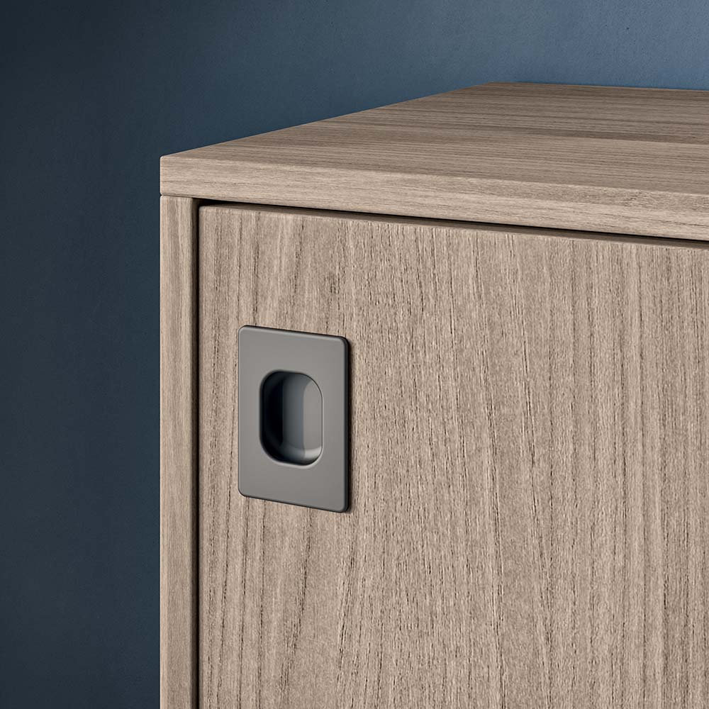 Innfelte ABS-håndtak i hvit, sølv eller mørk grå.