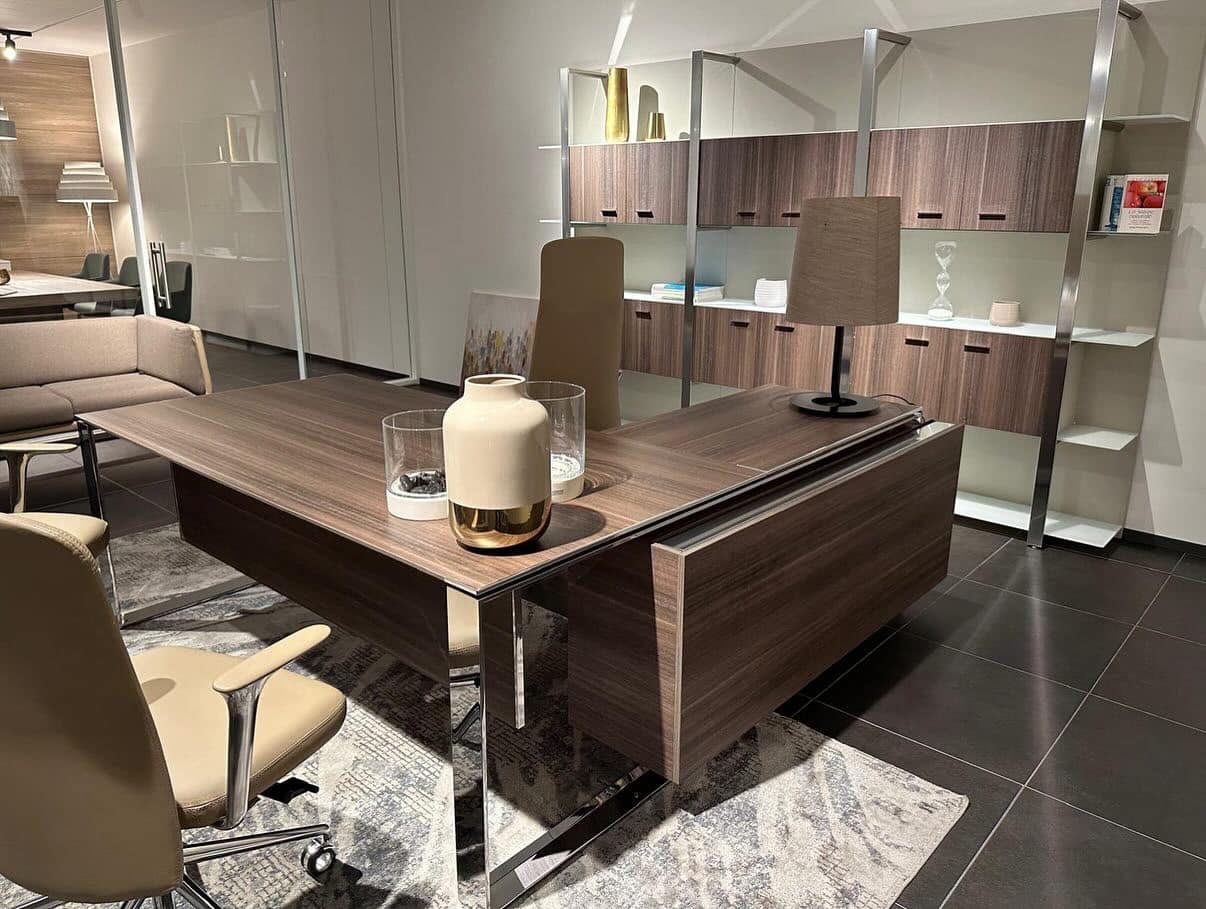 Eksklusivt italienskt skrivebord i laminat. Platetykkelse 18 mm.