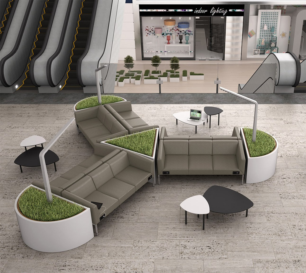 moderne og tradisjonelle miljøer som venterom, banker, lounger eller hotellobbyer.