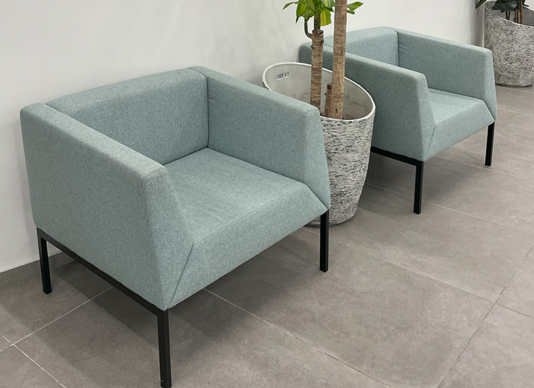 moderne og tradisjonelle miljøer som venterom, banker, lounger eller hotellobbyer.